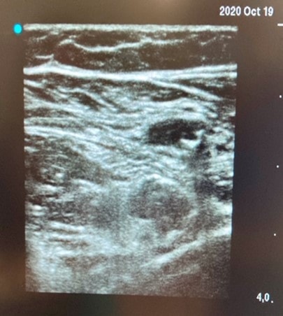 - Profundidad esperada de 1-3 cm. Hay que colocar la sonda perpendicular al eje longitudinal del muslo. A veces es necesario el dar un cierto grado de “tilt” (cabeceo) a la sonda porque el nervio femoral presenta bastante anisotropismo y con este cabeceo se visualiza mejor