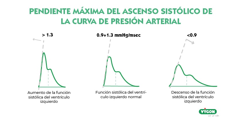 El dP/dt máx. hace referencia a la pendiente máxima del ascenso sistólico de la curva de presión arterial. Cuanto más pronunciada sea la pendiente, mejor será la función sistólica del ventrículo izquierdo.