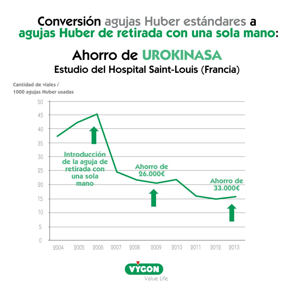 El ahorro anual de todo el material necesitado durante las intervenciones de desobstrucciones es significativo, ya que en un hospital que atiende a pacientes con cáncer mediante los servicios de hospital de día y oncología, el uso de agujas Huber puede llegar a ser muy importante.