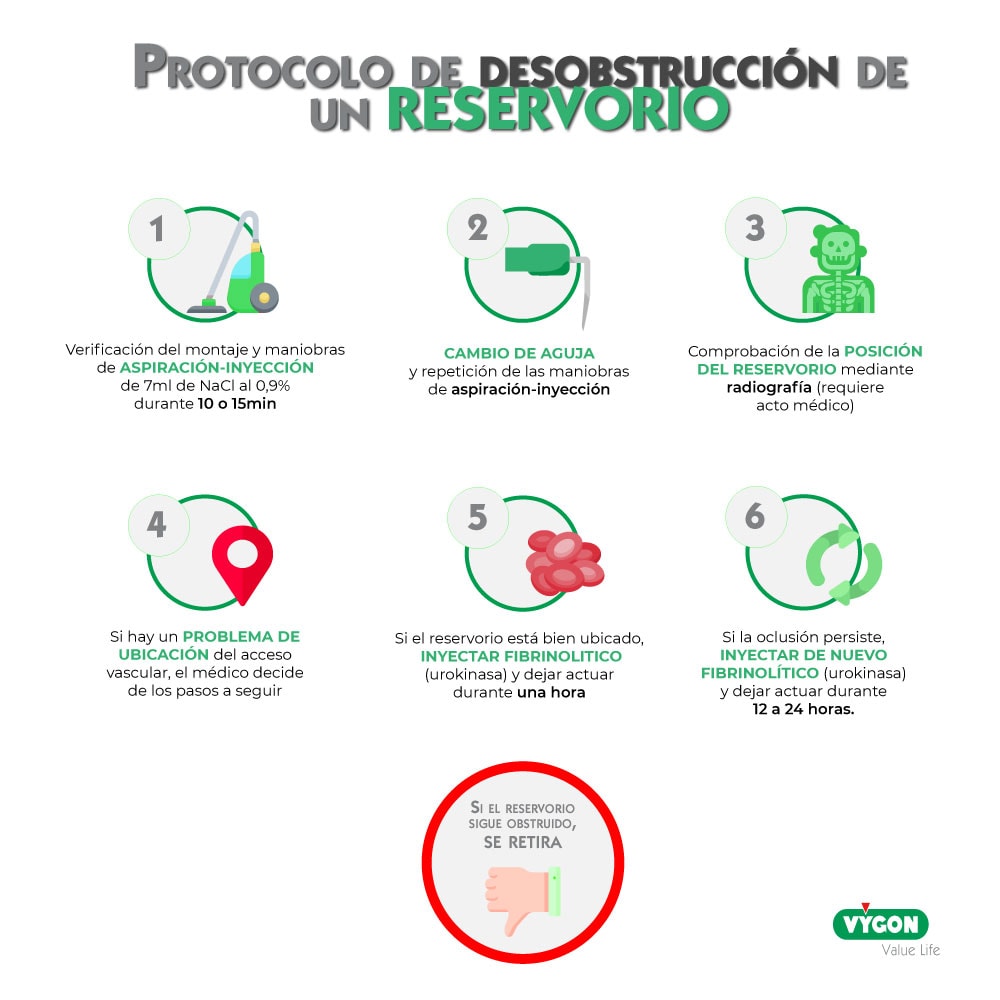 Un ejemplo de protocolo que se usa para resolver la oclusión en reservorios es el siguiente:
