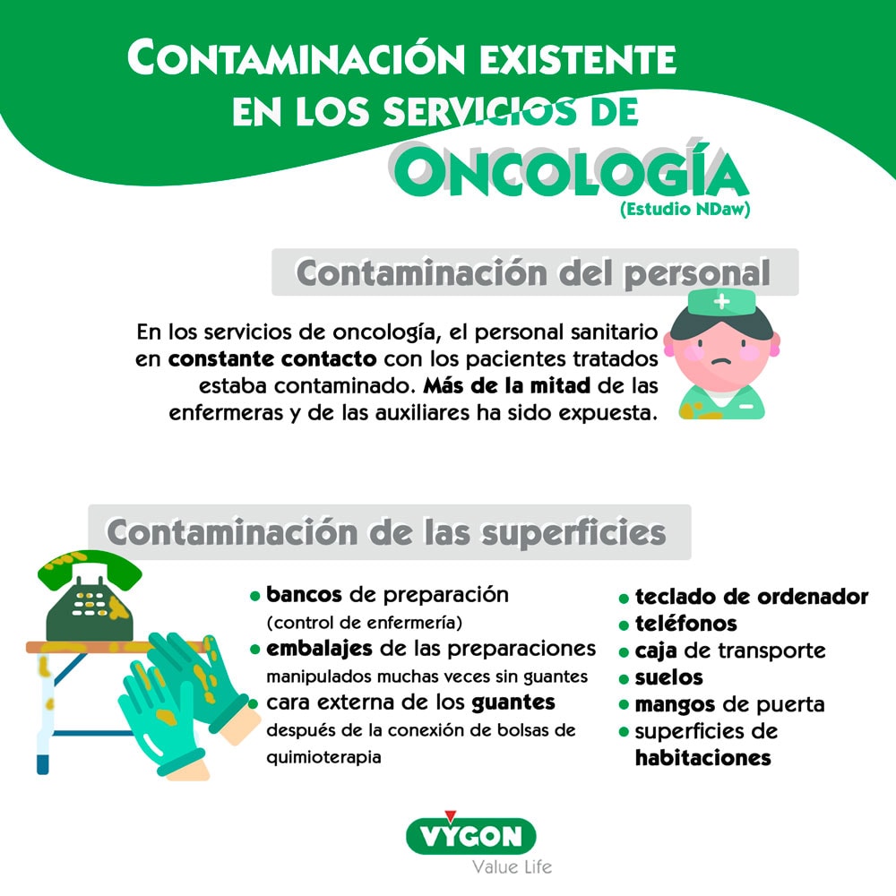El estudio llevado a cabo por Fries et.al en 12 servicios oncológicos ambulatorios, lleva a la misma conclusión, incluso en este caso, en centros en los cuales los recursos a nivel de bioseguridad son importantes (7).
