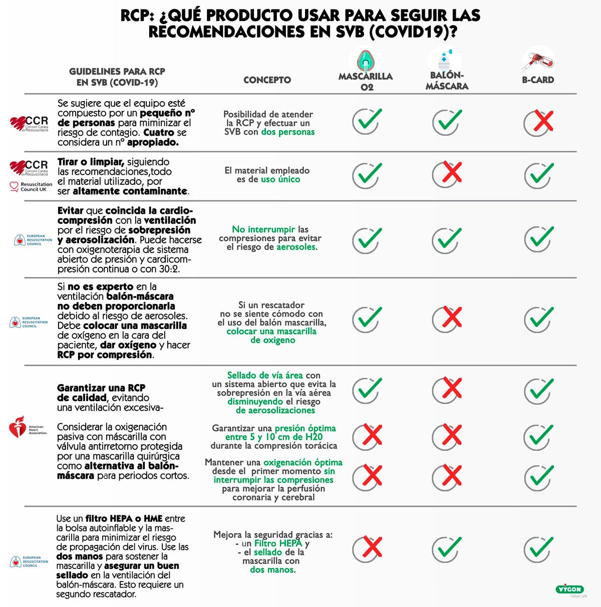 Hoy os traemos una comparativa entre tres dispositivos diferentes: la mascarilla de O2, el balón-máscara y dispositivos de oxigenación pasiva como B-Card. Para que la comparativa sea lo más justa posible, hemos decidido tomar como referencia las últimas recomendaciones de las sociedades científicas para RCP en tiempos de COVID-19 y ver, caso por caso, si los dispositivos cumplen o no con estas recomendaciones.