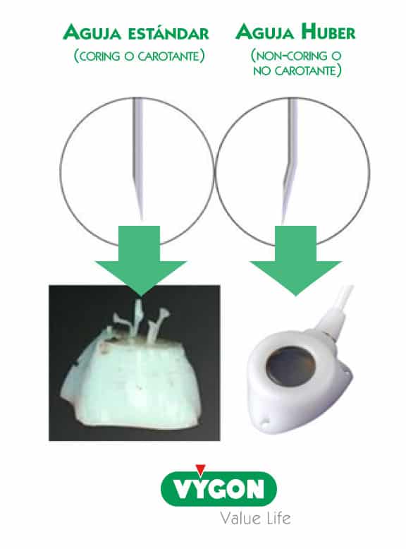 Por eso, cualquier aguja no es válida para el acceso al reservorio. Las agujas no carotantes aportan seguridad y garantizan la integridad de la cámara del catéter.