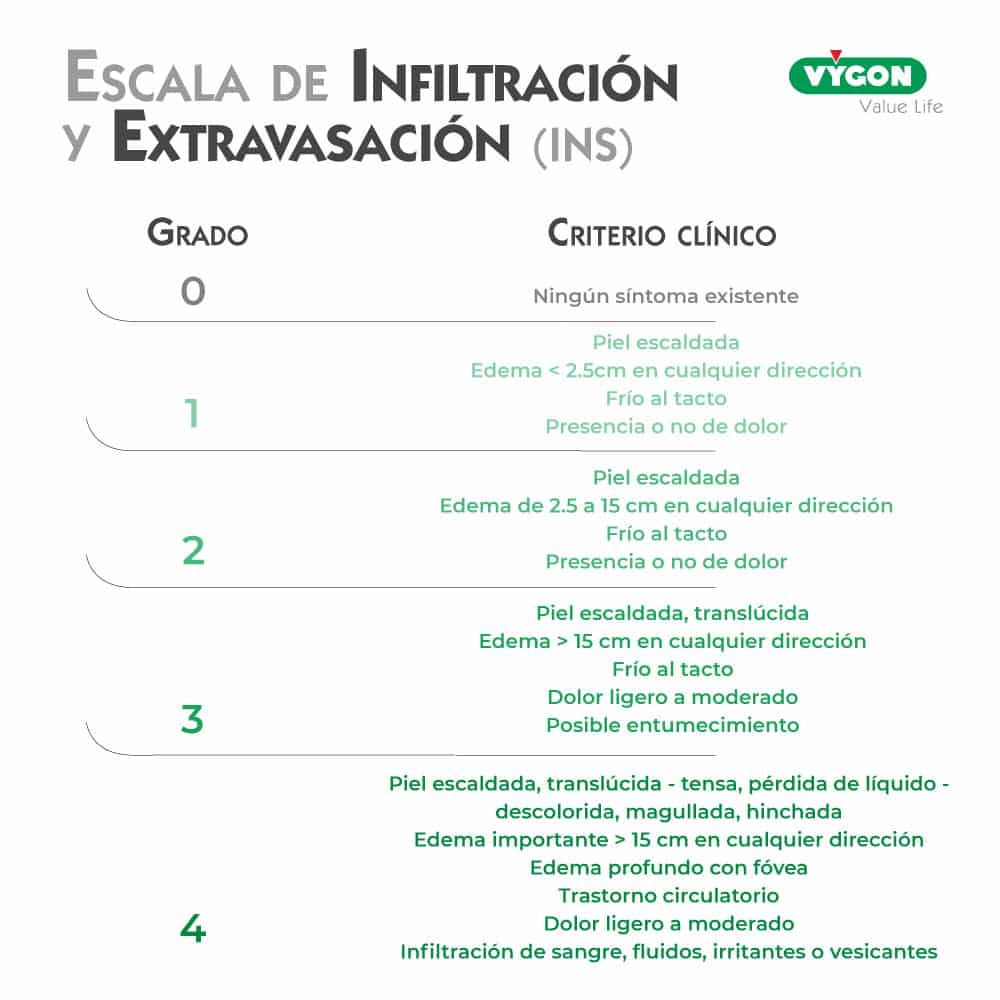 Según las definiciones de la INS de 2021, decimos que la infiltración es la administración accidental de una solución o medicación NO vesicante en el tejido circunstante a la zona de punción (del catéter o de la aguja del reservorio). Por otro lado, la extravasación viene definida como la infiltración accidental de una solución o medicación vesicante en el tejido circunstante a la zona de punción del catéter o de la aguja.