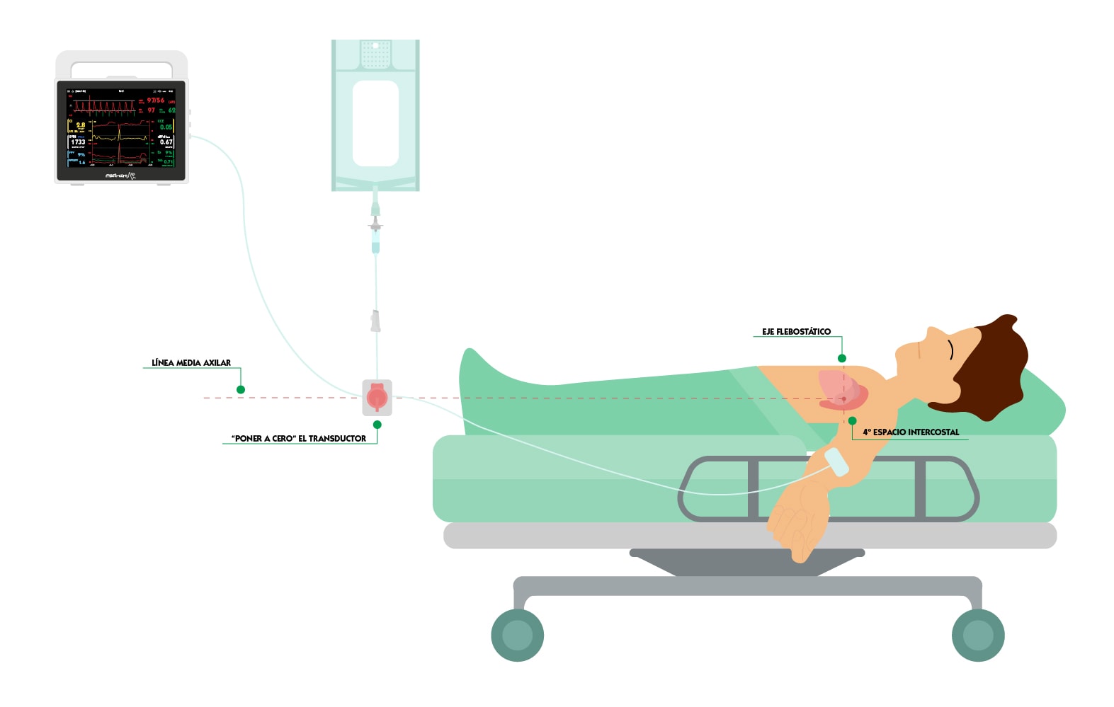 Para comprender correctamente la secuencia, es necesario entender qué es el eje flebostático y cómo realizar el cero.