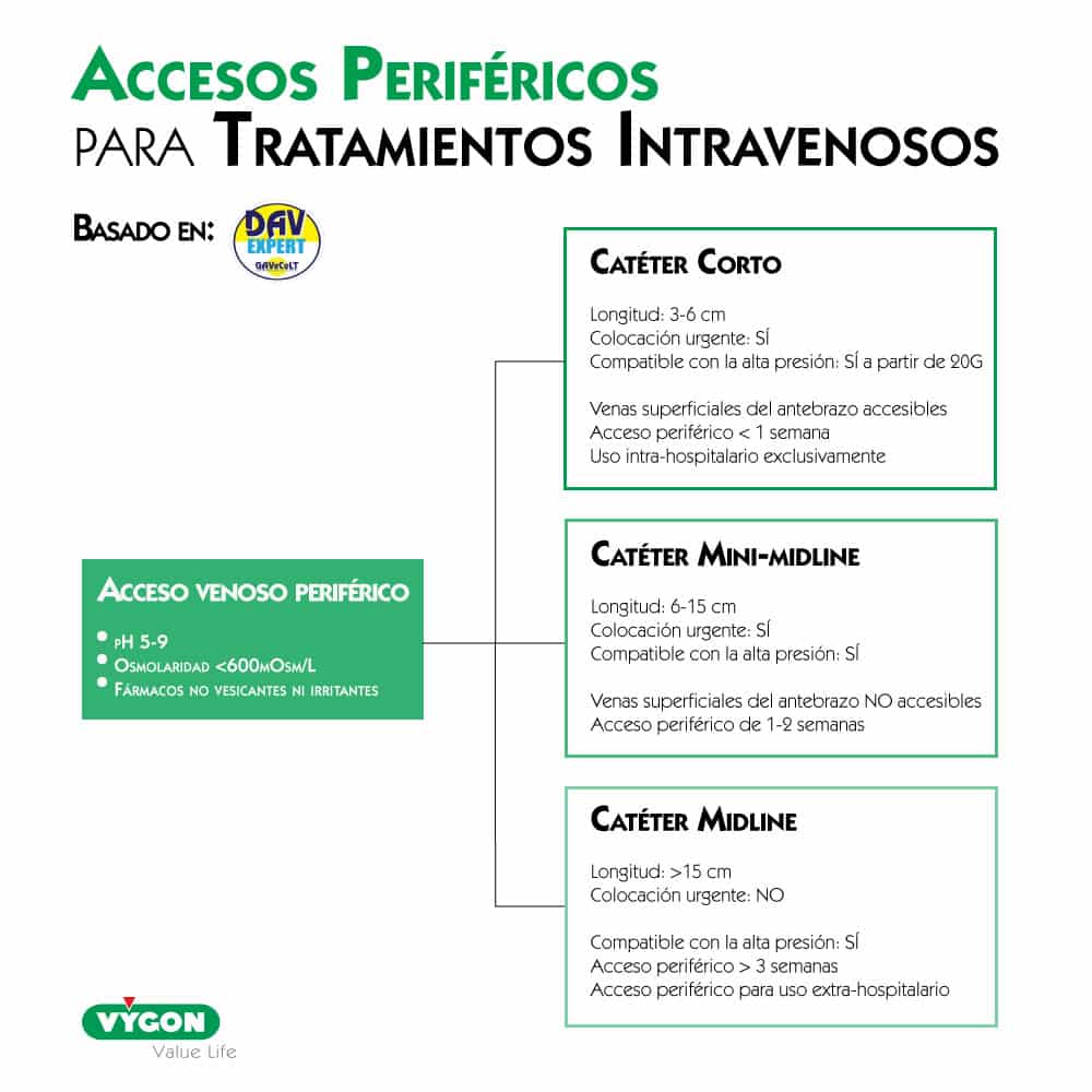 Se tiene que elegir el acceso vascular más adecuado para el paciente (capital y diámetro venoso) en relación con la pauta, en concreto la duración de la perfusión y del tratamiento.