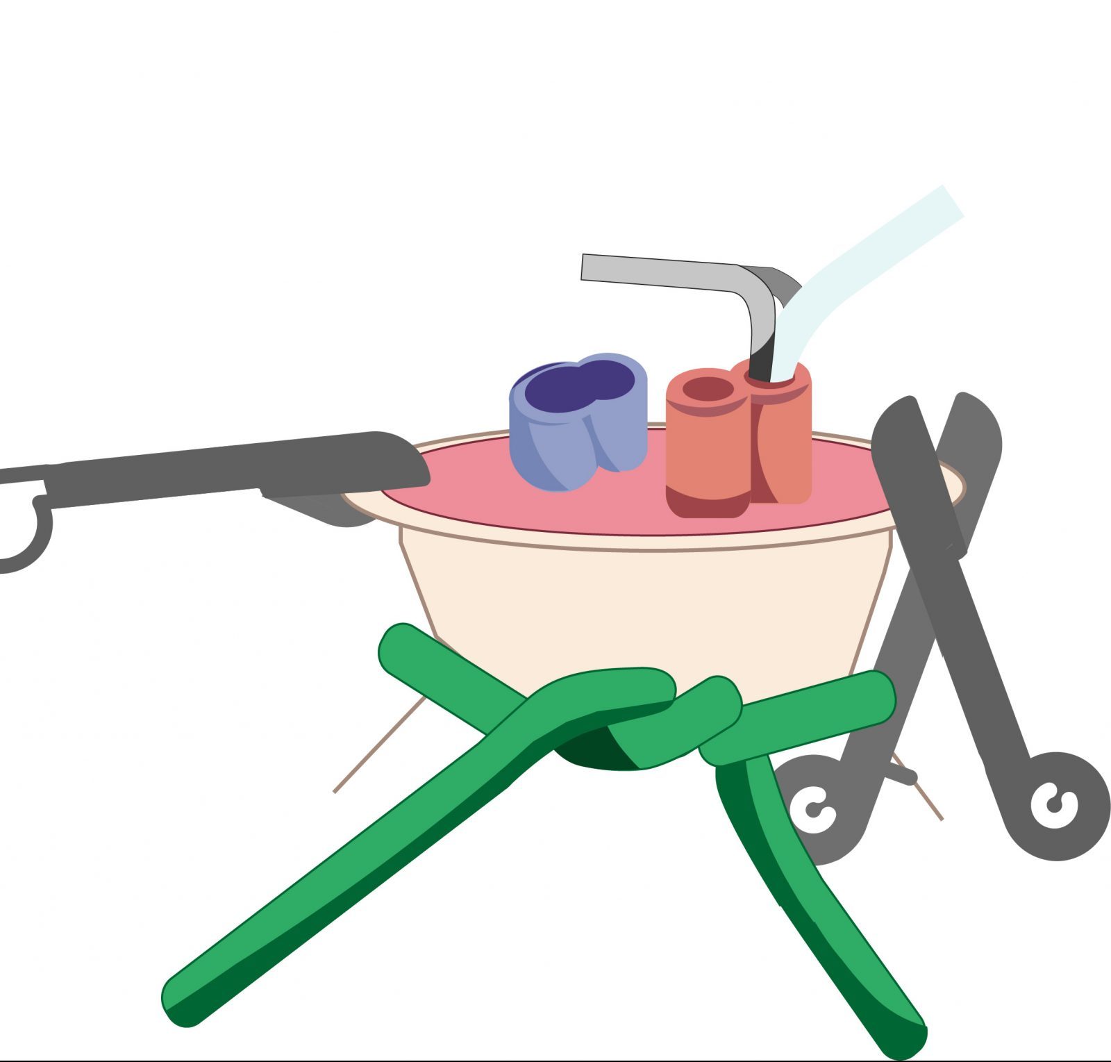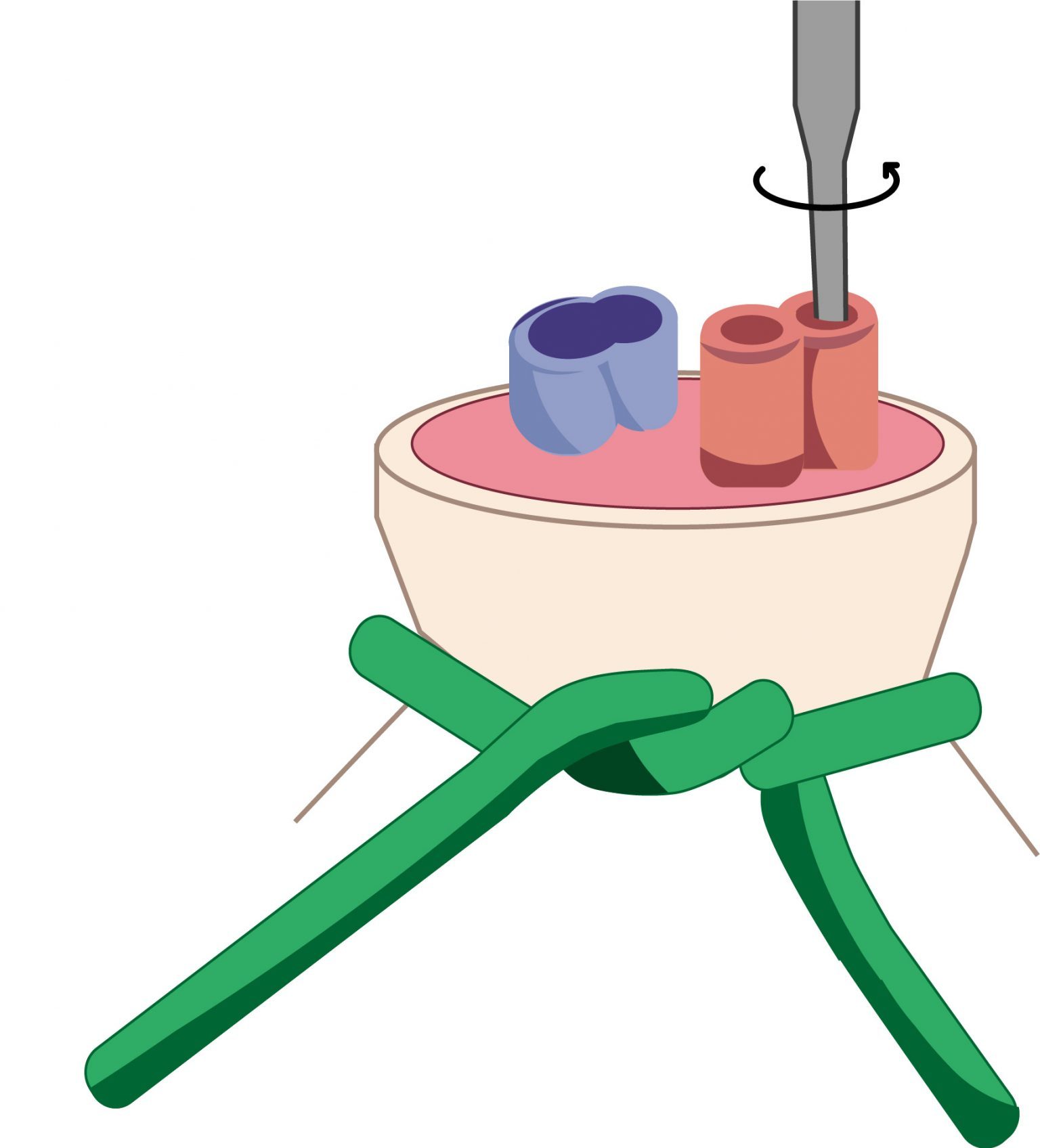 - Con unas pinzas, mantener el cordón umbilical recto y estable