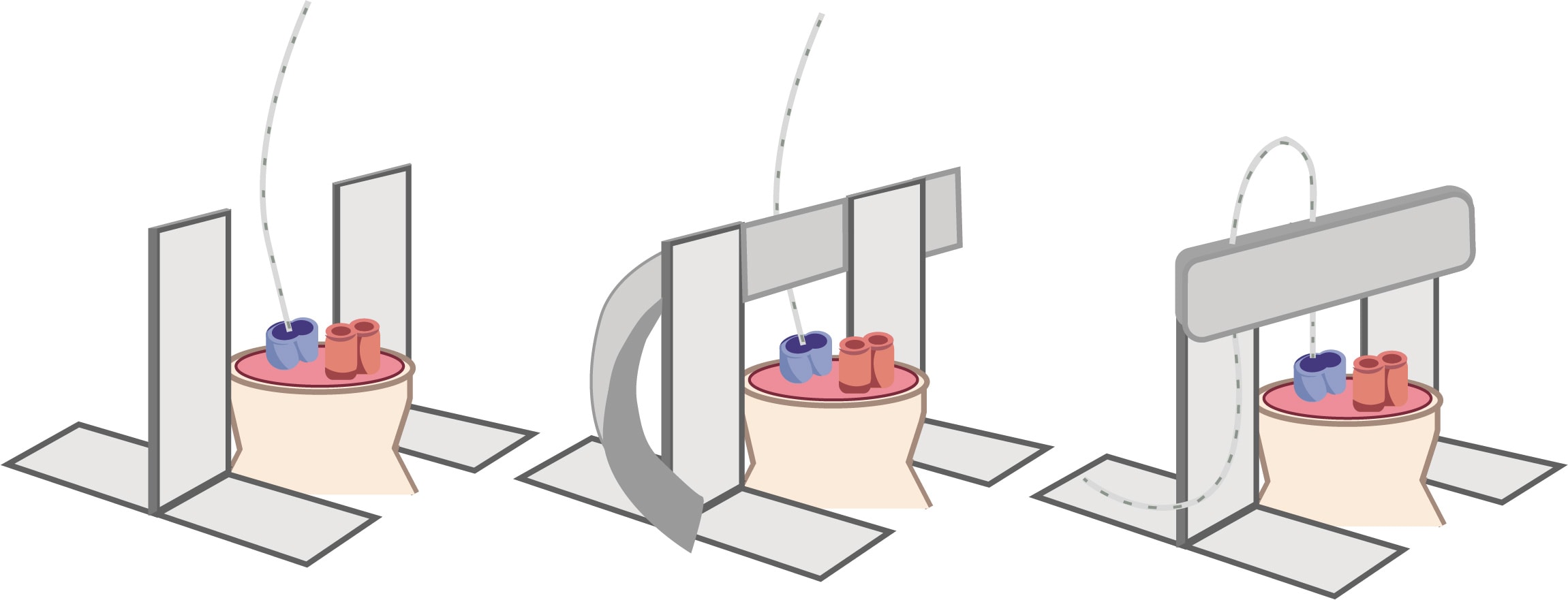 Existen distintos tipos de fijaciones. Se recomiendan las técnicas de fijación que no provoquen la oclusión del ombligo y ayuden a preservar la integridad de la frágil piel del paciente6