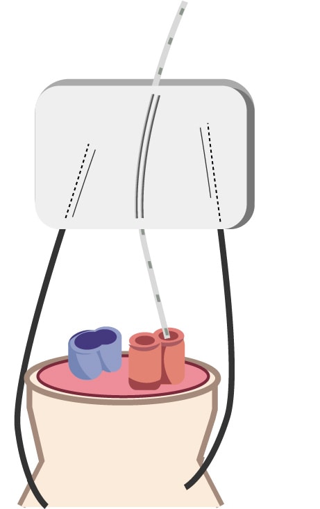 - El catéter venoso estará en la zona supra diafragmática de la vena cava inferior, a la altura de T9-T10