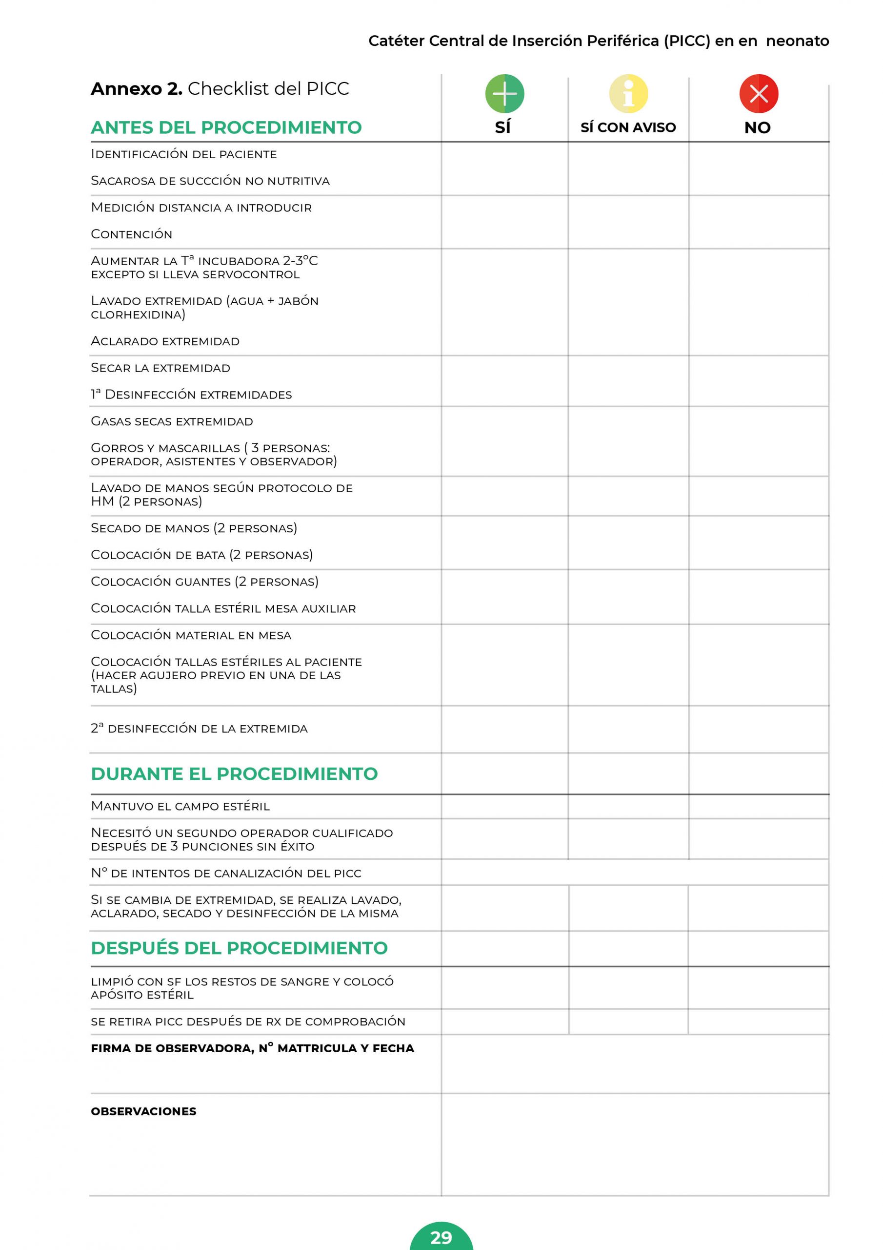 - Montes Bueno MT et al. Catéteres centrales de inserción periférica en recién nacidos: Documento de consenso del grupo español de terapia intravenosa neonatal. 1ª ed. Madrid: Autoeditado; 2010.