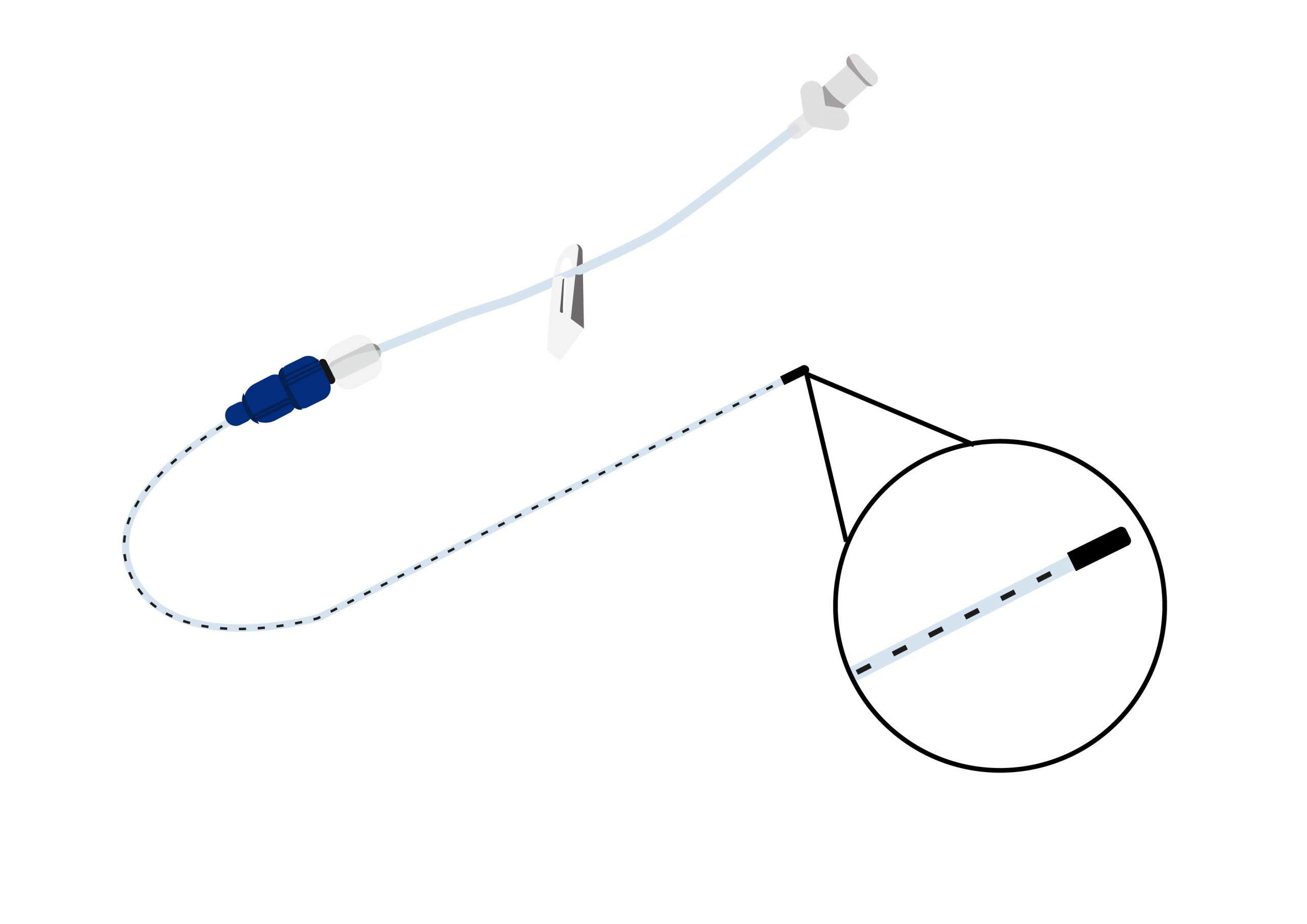 - Comprobar la integridad del catéter comprobando la marca negra que delimita el final