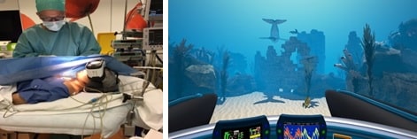 En el aspecto clínico, la eficacia de la realidad virtual es ahora reconocida. Se recomienda su uso cuando se trata de curas de quemaduras (5). Su uso también se está extendiendo a las unidades de cirugía: en urología (6), ortopedia(7), cirugía mamaria(8) y acceso vascular (9, 10, 11).