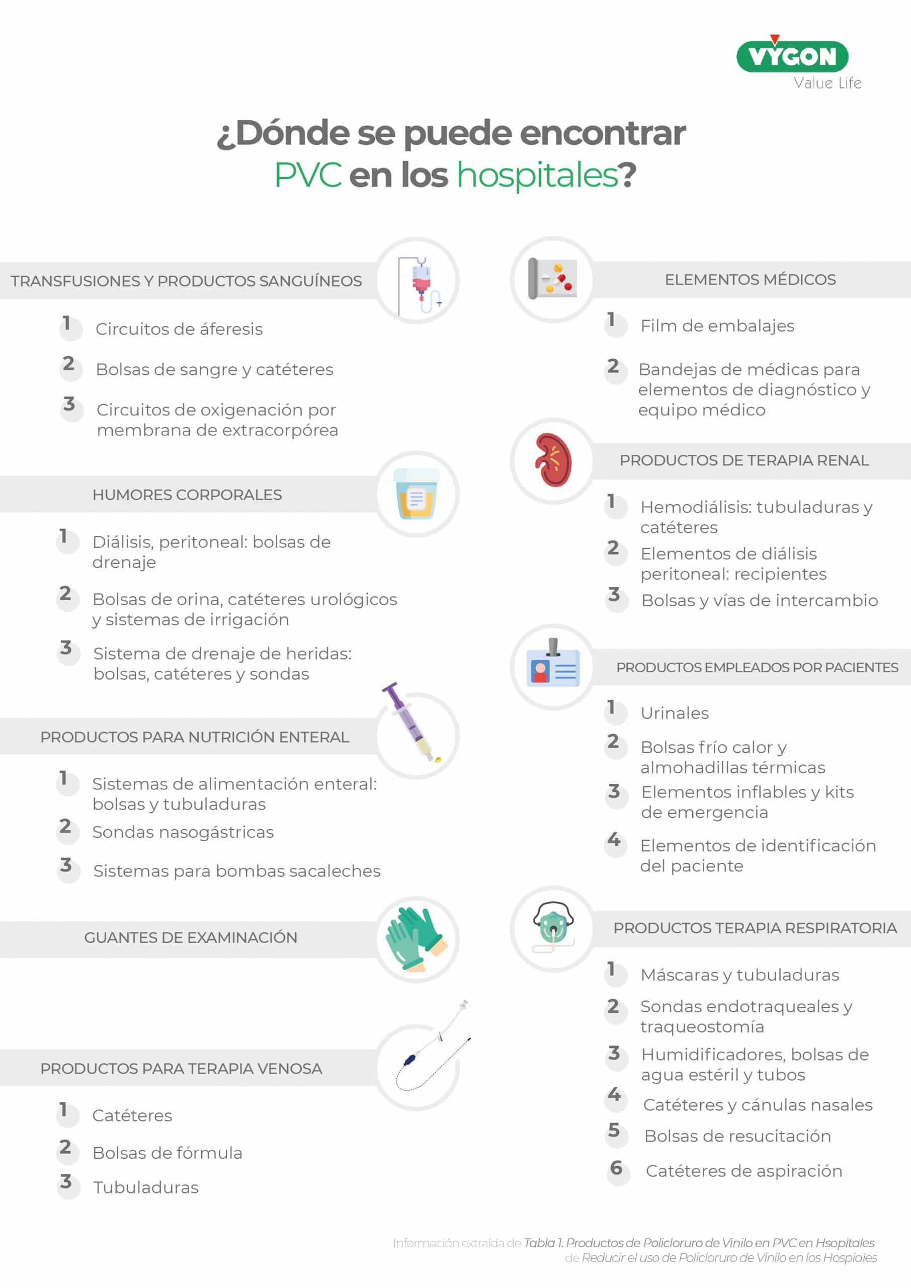 El PVC es un material ampliamente presente en productos sanitarios. Podemos encontrarlo en sondas, catéteres, jeringas, bolsas para la nutrición… Esto se debe principalmente a su bajo coste, amplia disponibilidad y propiedades físicas2,3.