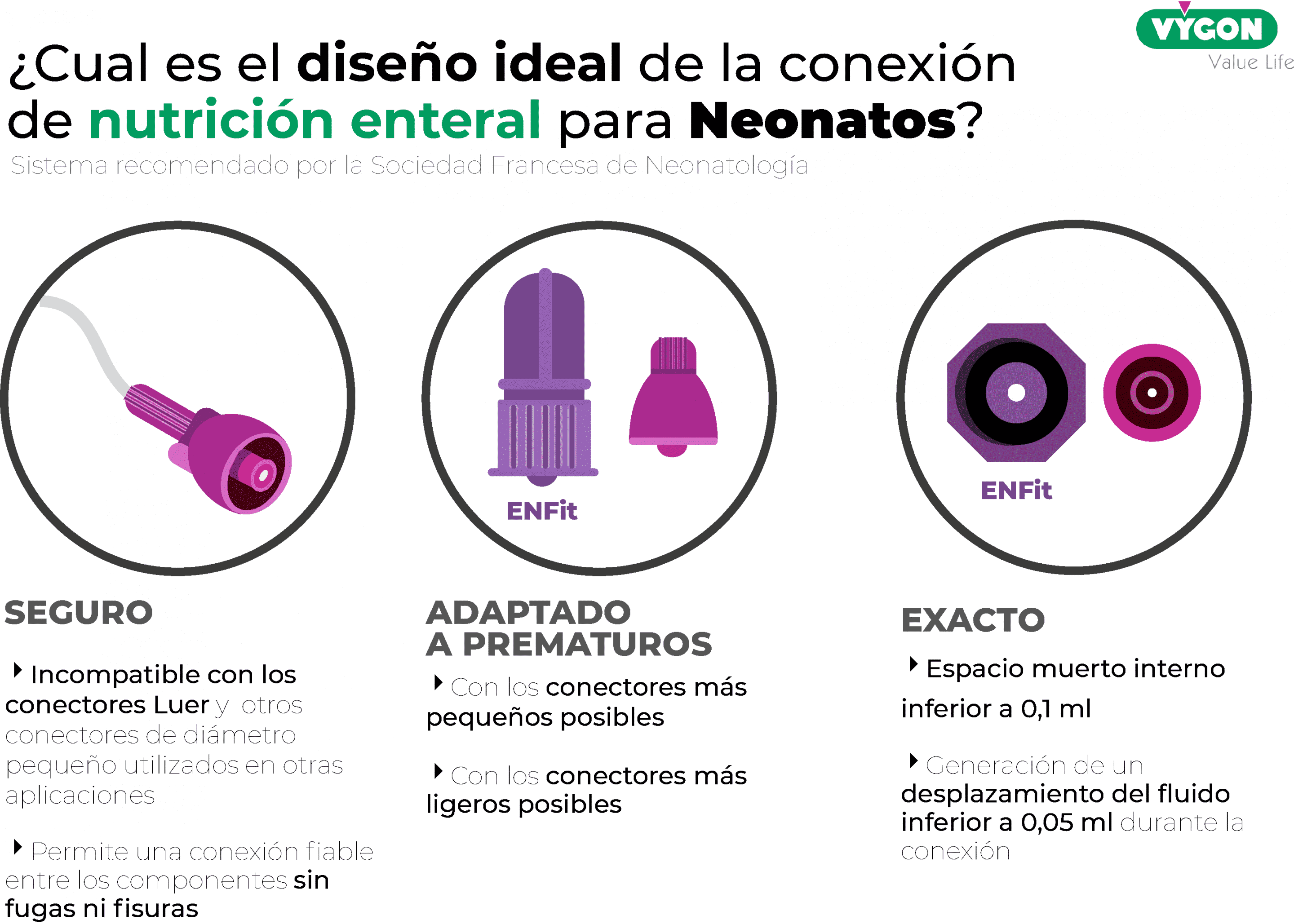 Lamentablemente, la conexión ‘Enfit’ no es compatible con una buena seguridad en el paciente neonatal, ya que sus jeringas/sondas disponen de un volumen muerto ‘excesivo’ que implica que no sean precisas en caso de necesitar administrar dosis bajas de medicación.