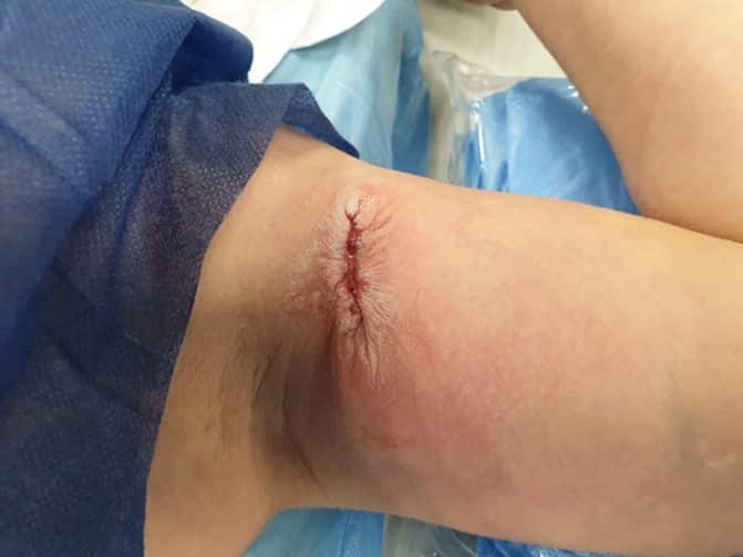 Resultado tras la reparación de la piel en zona de extrusión de cámara de PICC-port. Fuente: Gloria Ortiz Miluy.