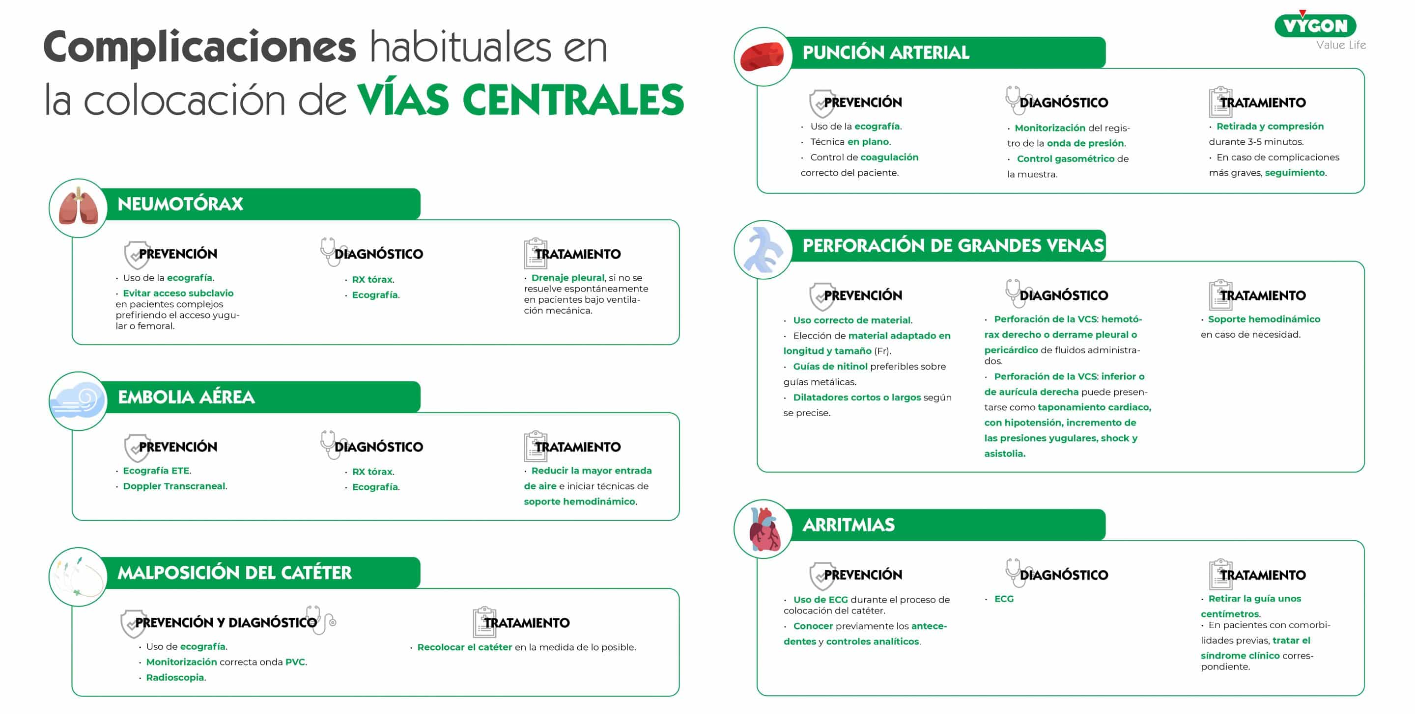 Conocer las posibles complicaciones del acceso venoso central permitirá que nos anticipemos a los mismos y, en caso de que se produzcan, poder actuar de forma inmediata.