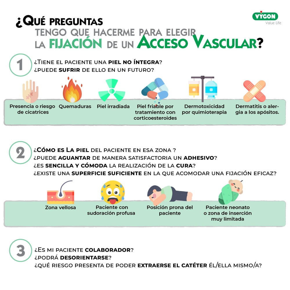 Por lo que hacer un examen exhaustivo y permanente de la situación es siempre pertinente, no solo al momento de la inserción del catéter vascular. En una valoración previa, en el seguimiento del paciente con necesidad de acceso venoso y con posterior colocación del mismo, se debe tener en cuenta lo siguiente, el tiempo que el catéter les acompañe: