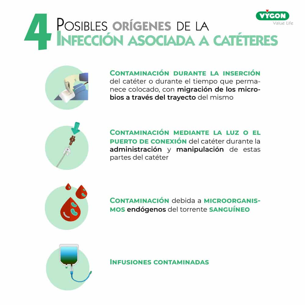 Las infecciones por catéter pueden producirse principalmente por 4 motivos que las guías del INS recogen de la siguiente manera:
