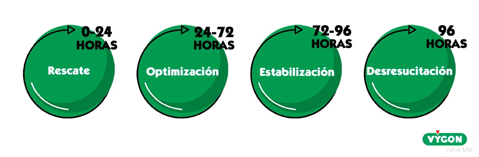 Tras 72h desde el inicio de la fluidoterapia comienza la fase de estabilización, la cual se puede extender hasta las 96h desde el momento de comienzo del tratamiento.