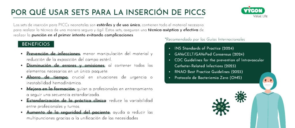 Las principales guías de referencia en cuidados neonatales y terapia intravenosa recomiendan explícitamente la utilización de sets o bandejas estandarizadas: