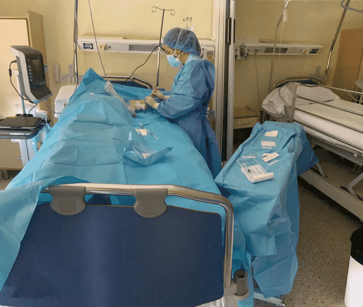 Tener unos catéteres de buena calidad, material estéril para respetar las condiciones de asepsia que requiere la técnica. Poder trabajar en una sala, un habitáculo también tiene mucha importancia tanto para hacer el procedimiento como para existir físicamente para los demás servicios.