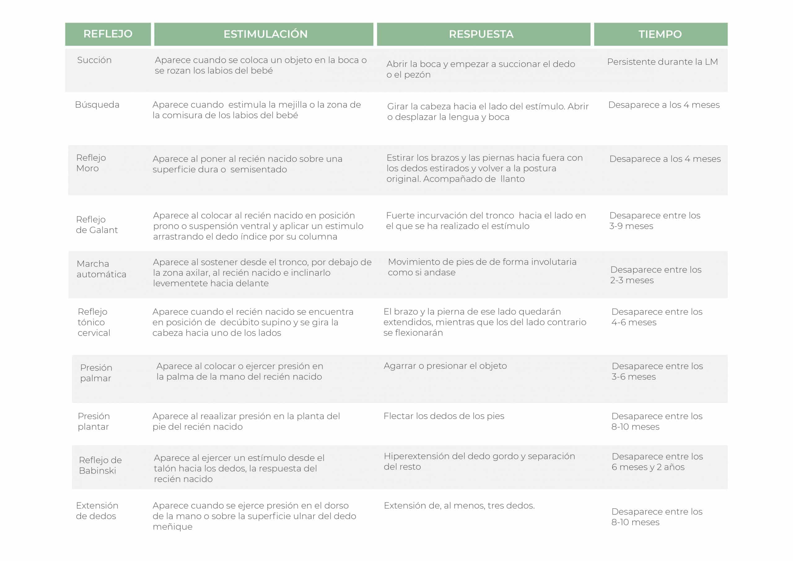 • De 0 a 4 semanas los reflejos se presentarán en su máxima intensidad