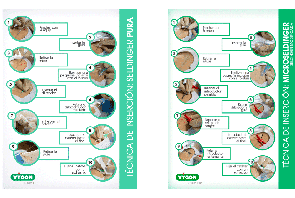Existen 2 técnicas de inserción, la Seldinger pura y la Microseldinger: