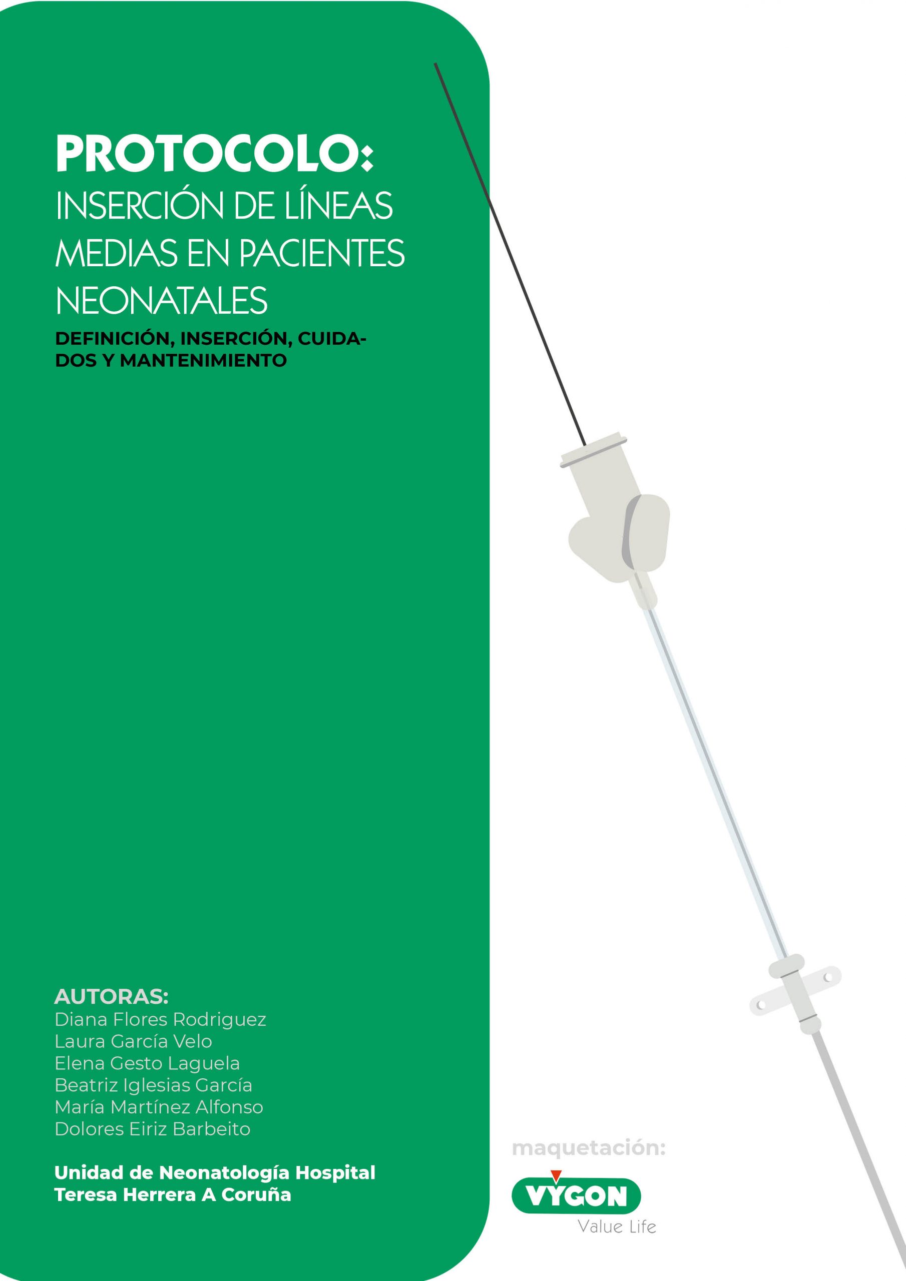 - Flores, D., García, L., Gesto, E., Iglesias, B., Martínez, M. and Eiriz, D., 2021. Protocolo: Inserción de líneas medias en pacientes neonatales. [PDF] Unidad de Neonatologías Hospital Teresa Herrera A Coruña. Available at: <http://campusvygon.com/wp-content/uploads/2020/09/Protocolo-Lineas-medias-v2_compressed.pdf> [Acceso 5 Julio 2020].