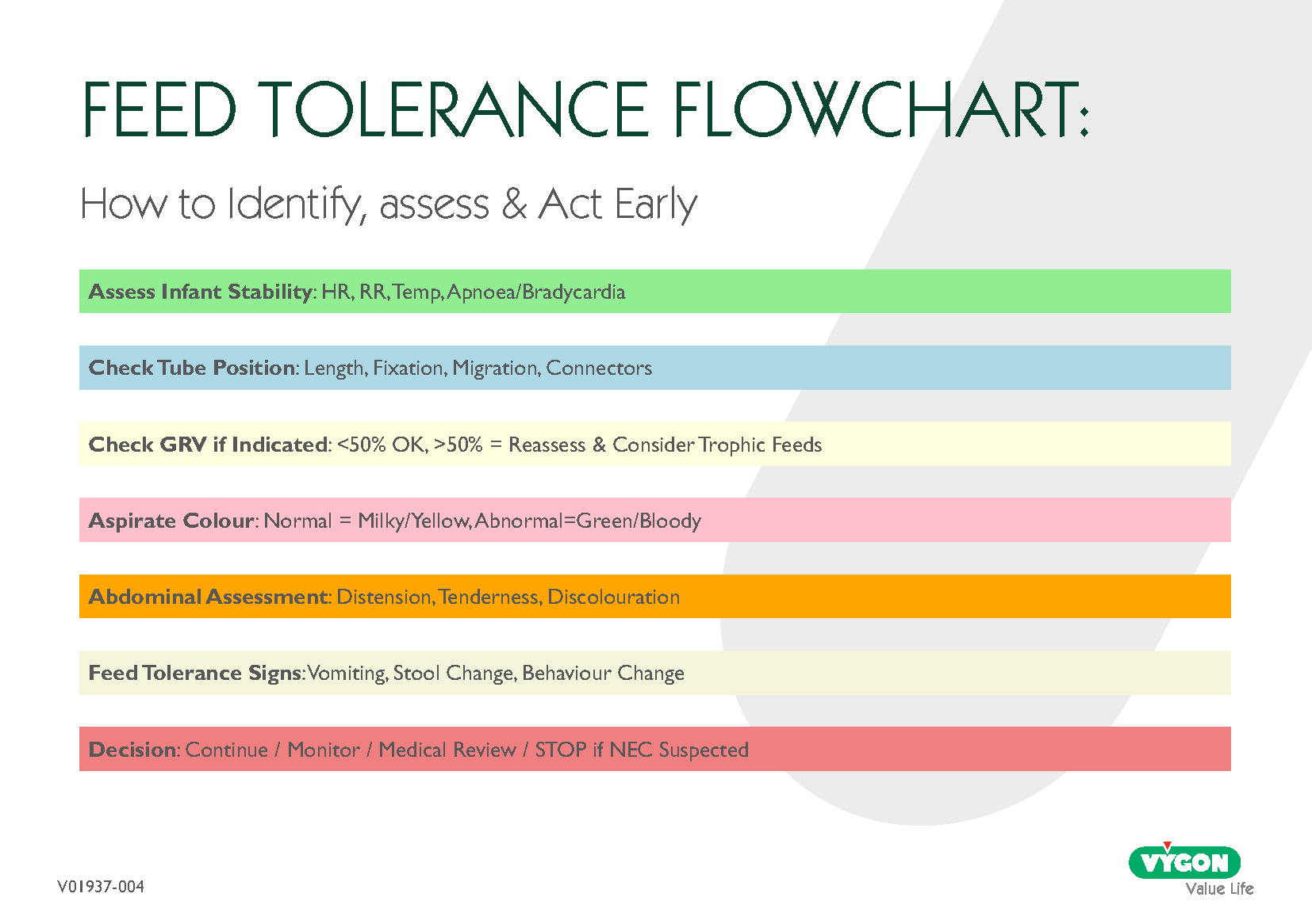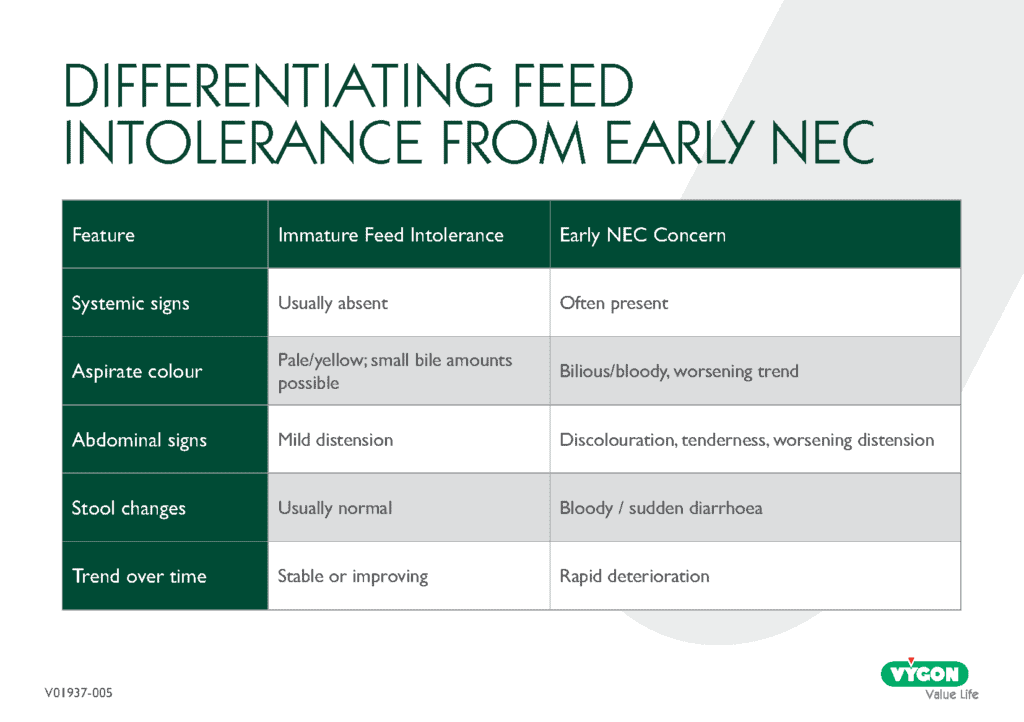 Early, structured identification of feed tolerance helps protect infants from both underfeeding and avoidable harm. By applying consistent GRV assessment, colour interpretation, and differentiation between intolerance and early NEC, clinicians can support safer feeding progression while reducing unnecessary interruptions.